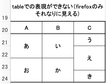 <caption>tableでの表現ができない(firefoxのみそれなりに見える)</caption>