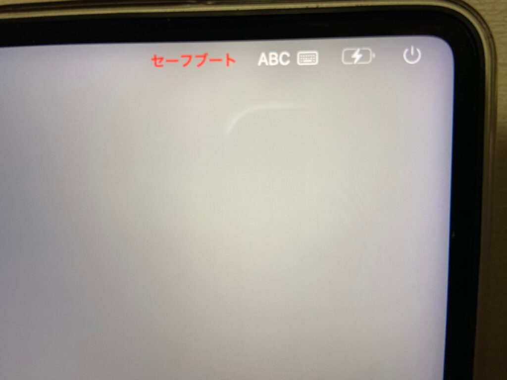 ログイン画面に来たときに、右上に「セーフブート」と表示されていれば成功。