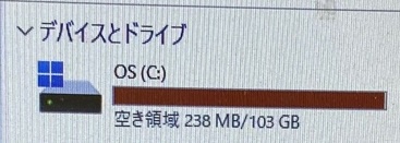 画像は238MB空いていることになっているが、少し空けた結果であり当初0MBになっていた。