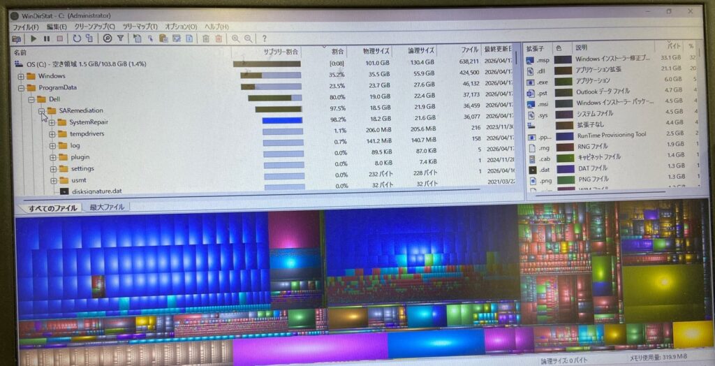 さて、WinDirStatで見てみると「その2」と同じように C:¥ProgramData が多めの23.7GB。