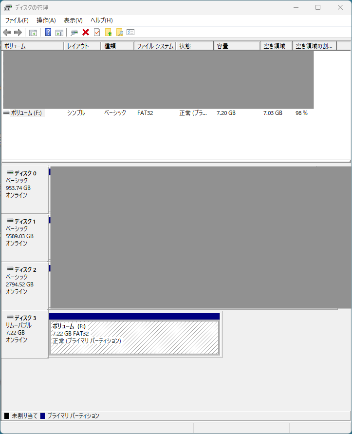 こういうときはdiskpartでしょ。前回で学習していますから。