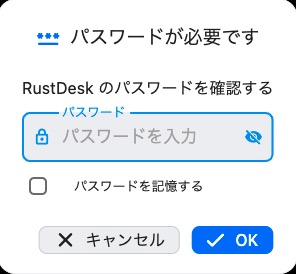 接続元(操作をする側)から接続を試みるとき、通常はパスワードを入力する。